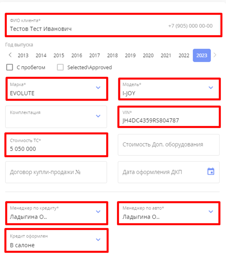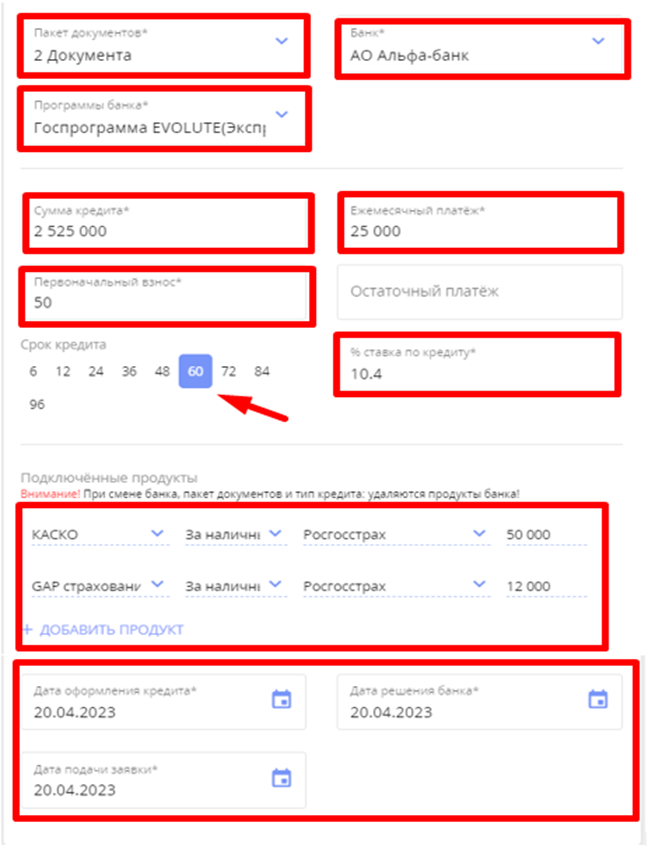 3. Откроется страница с полями (поле, отмеченное звездочкой обязательно к заполнению), пользователю необходимо внести информацию по выданному кредиту.