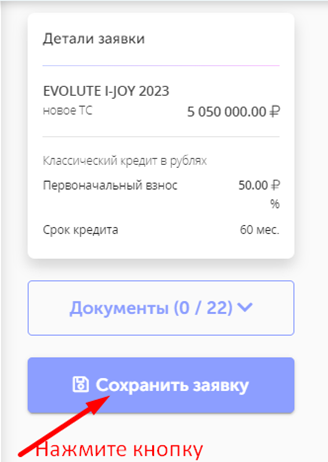 4. Сохраните заявку, система отобразит сообщение об успешном сохранении. Кредитная заявка добавится в журнал.
