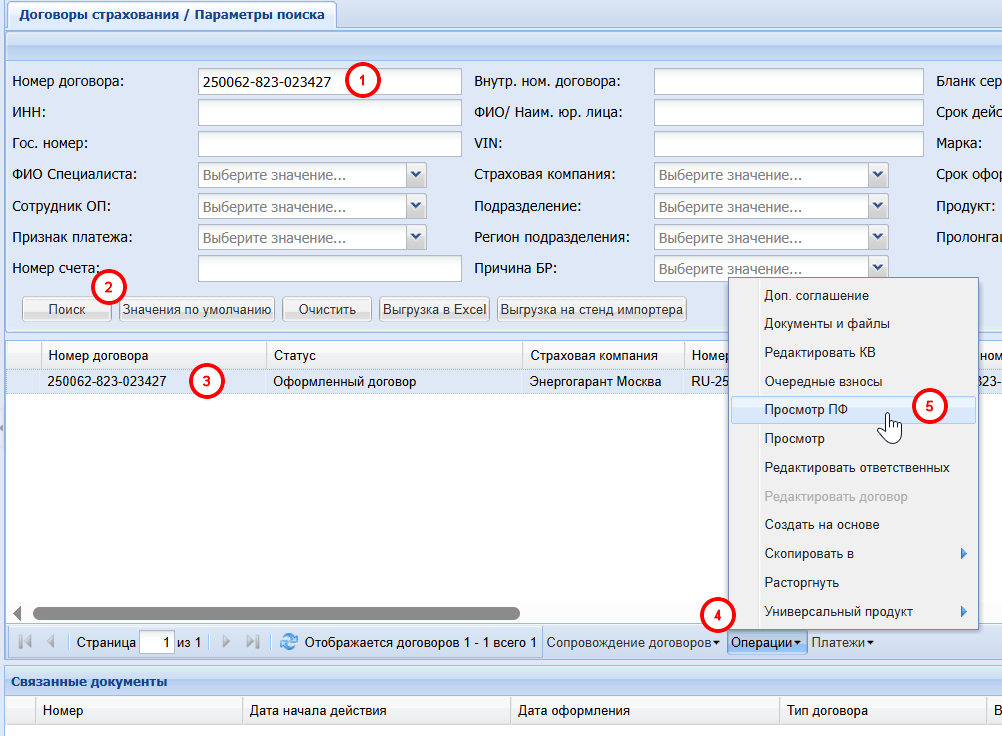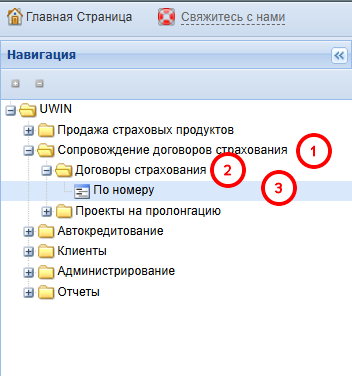 Сопровождение договоров страхования => Договоры страхования => По номеру
