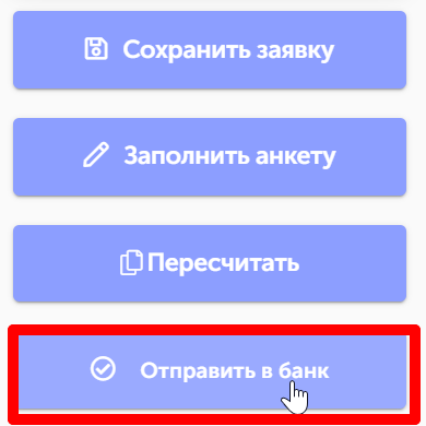 После вложения документов можно производить отправку кредитной заявки в банки посредством кнопки «Отправить в банк».