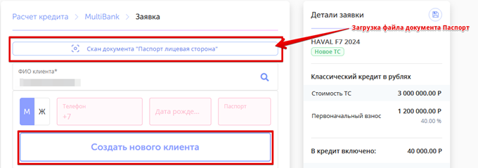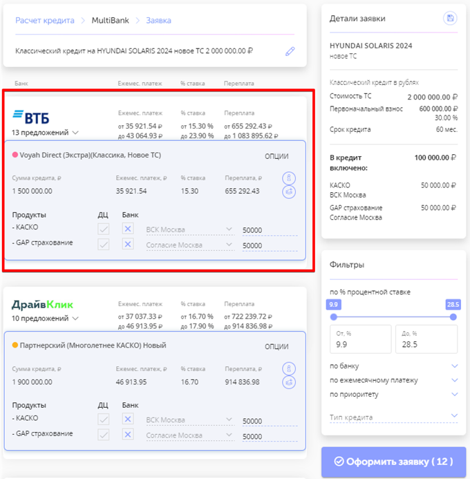 После заполнения полей требуется нажать кнопку «Рассчитать». Система произведет переход на этап «MultiBank».