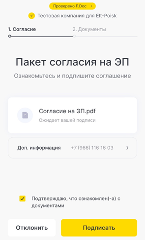 После ввода кода клиенту будут доступны документы для ознакомления и подписания