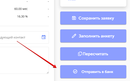 После вложения документов можно производить отправку кредитной заявки в банки посредством кнопки «Отправить в банк».